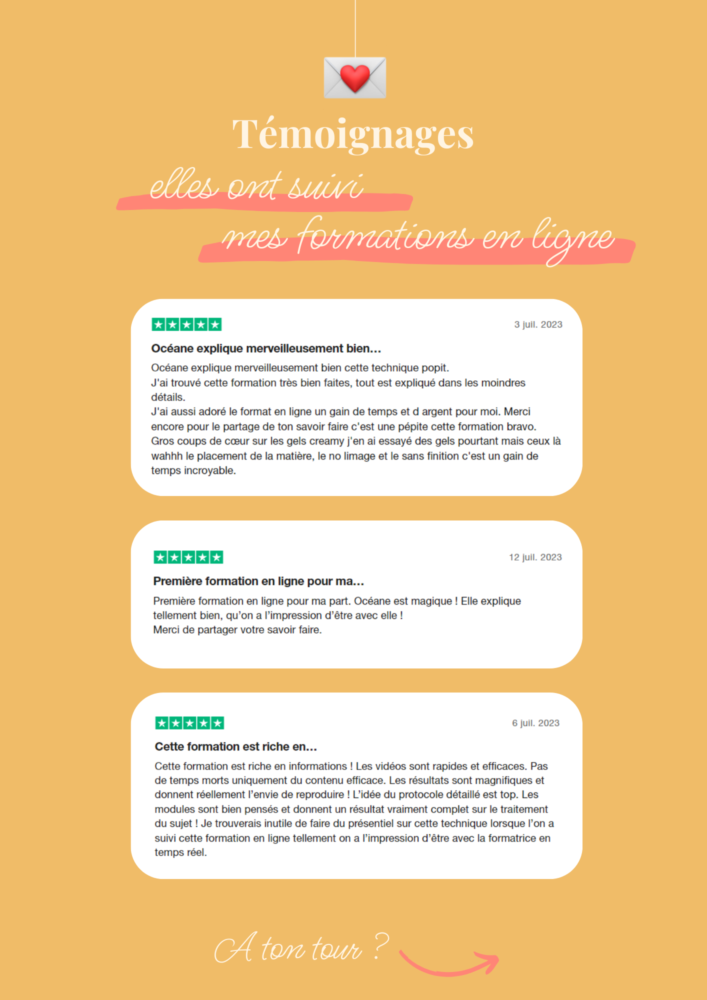 Prend le temps également de m'envoyer tes premiers essais et questions par mail, je serai ravie de voir ta progression et serai disponible pour t'aiguiller si il te reste des questions (tu retrouveras le détail des modalités de correction en PDF une fois que tu auras commandé ta formation)